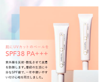 「顔全体が明るくなる感じがして、トーンアップ効果がすごい!🍑 日焼け止めとプライマーが一緒になっていて、とても便利です。」引用公式