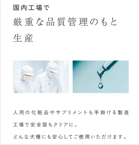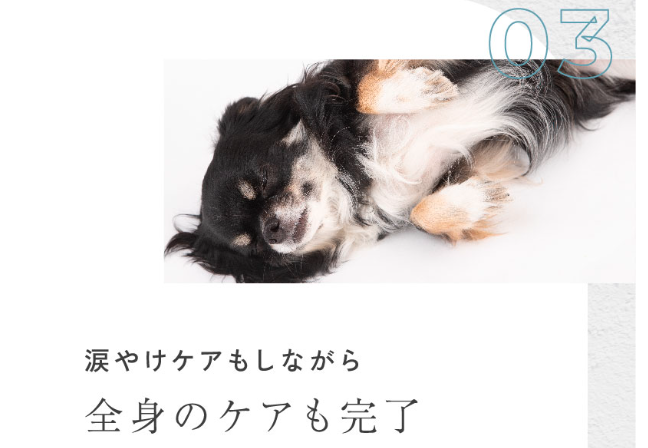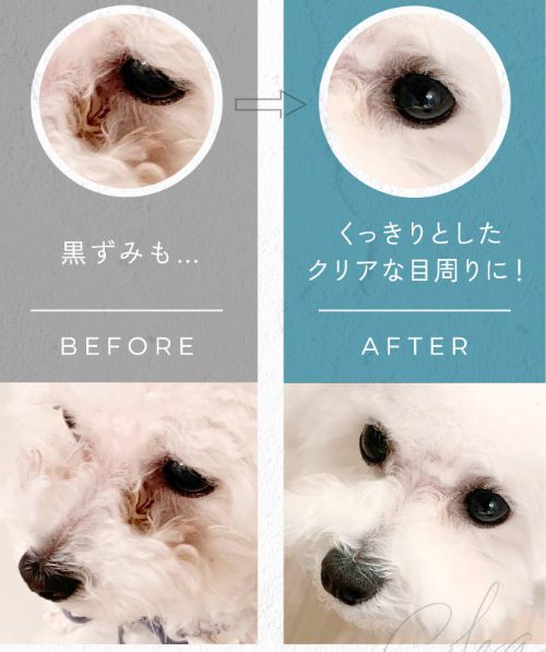 | メリット | 気になる目の周りのトラブルがすっきり 国内生産なので、安心して使える ワンコがいきいき、若くなってきたような |