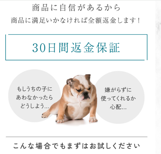 | デメリット | すぐに買いたいのに、ドラッグストアやペットショップで売ってない 値段が初回より2回目の値段が高いので続けづらい |