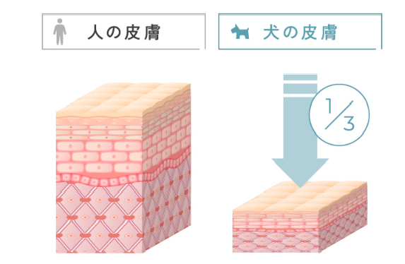 ワンちゃんの皮膚は人間のわずか1/3しかないのです