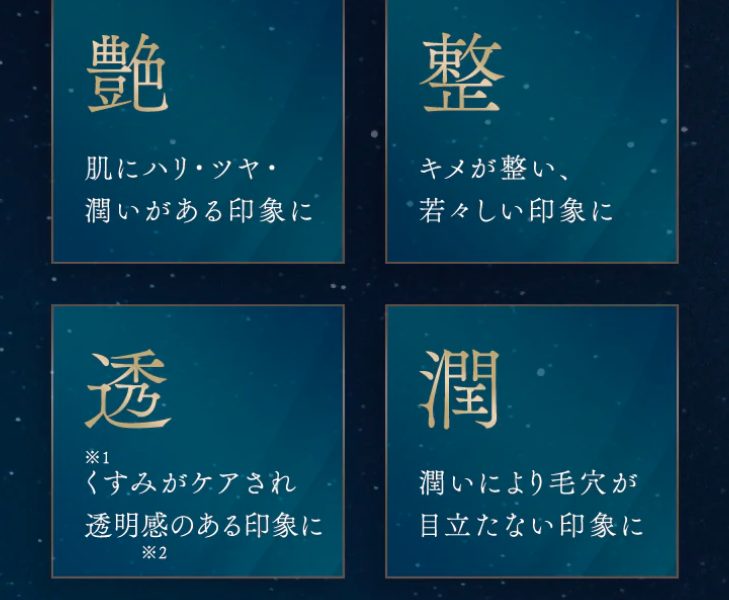 | 特徴 | 浸透しすくなった肌に 豊富な美容保湿成分を与える ことで年齢肌に効果的なアプローチが期待 |