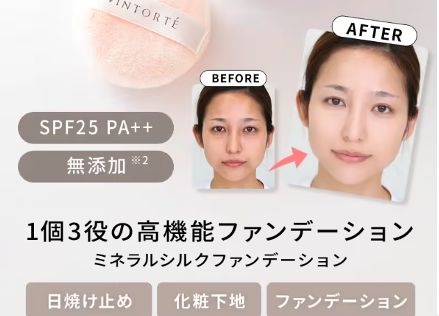 | ヴァントルテ ミネラルシルクファンデーションは日焼け止め、化粧下地、ファンデーションの3つの役をこれ1個でこなしてくれます |