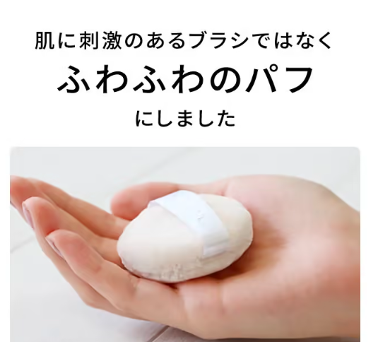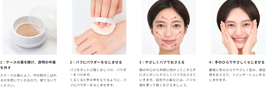| パフの特徴 | ふわふわのパフを採用。肌触りの優しいパフは、肌を刺激することなく、簡単にふんわりきめ細かい仕上がりを叶える |