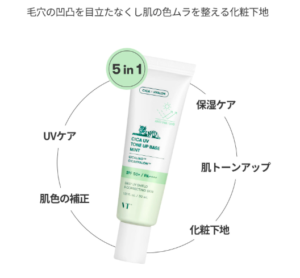 vtシカUVトーンアップは、毛穴の凹凸を目立たなくし、肌の色ムラを抑えてくれる化粧下地