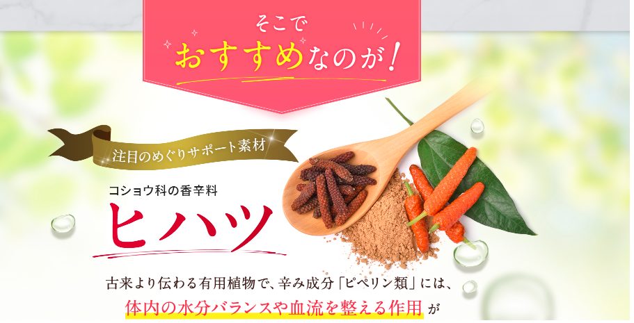 ピペリン類には体内の水分バランスや血流を整える作用があると