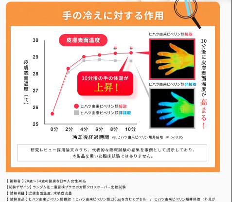 もしあなたが脚や手のむくみ、冷えでお悩みであれば、にヒハツ由来ピペリン類由来の機能性表示食品の