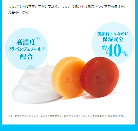 - 9 薬用フラビアソープは高濃度フラバンジェノール+ヒアルロン酸配合
