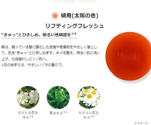 | 朝用 太陽の色 | 睡眠中の酸化した皮脂や古い角質を 取り除いて引き締まった素肌に |