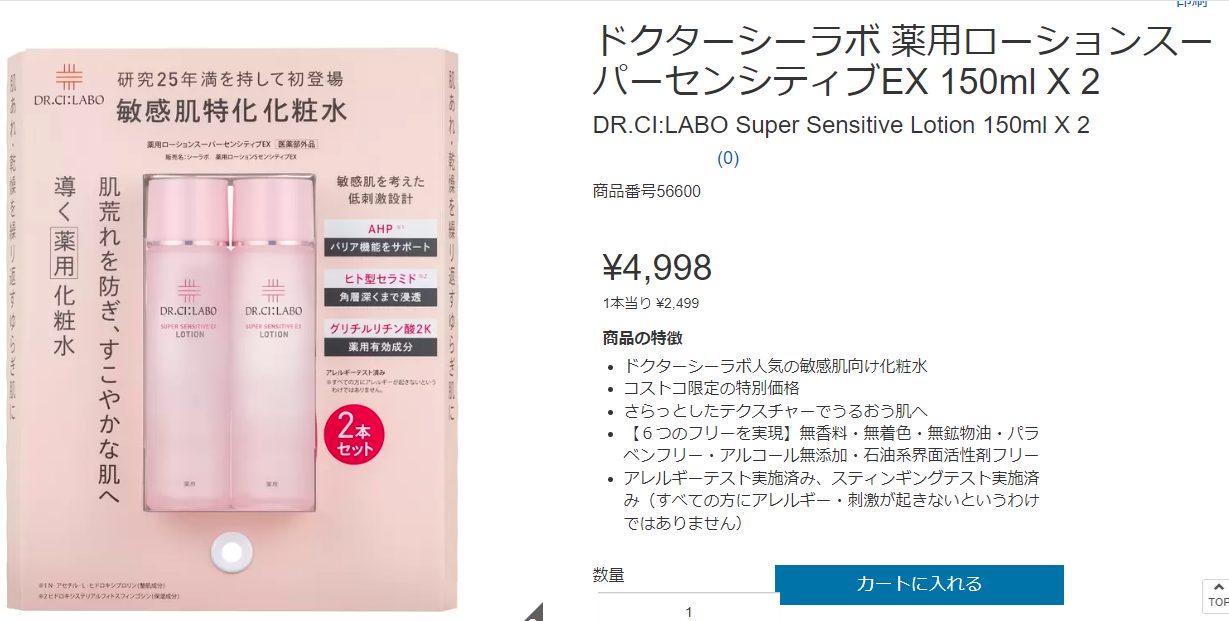 ドクターシーラボ 薬用ローションスーパーセンシティブexはコストコでも売ってるのか調査!最新の最安値販売店情報