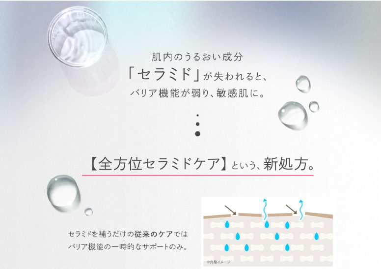 25年の皮膚研究に基づき開発され、AHP(浸透型アミノ酸)+ヒト型セラミドの“全方位セラミドケア”で、肌バリアをやさしく支えます。