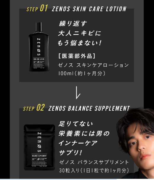 | ZENOSスキンケアローションのメリット | この1本で素肌印象をフラットに! Wの有効成分でニキビを予防 モニター満足度93% 医師、医療関係者が選ぶ3冠達成 アクネ菌に対する殺菌効力試験済み ニキビのないツルツル肌 |