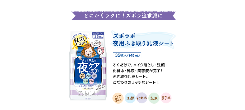 ズボラボ 夜用ふき取り乳液シートは