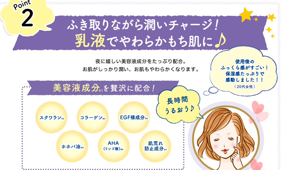 乳液で柔らかいもち肌に導いてくれます